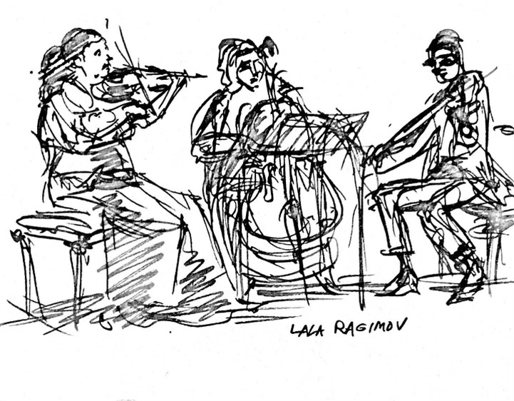 At our last concert, artist Lala Ragimov drew a sketch of our trio. We are happy to share the sketch with you here. Happy Easter!
