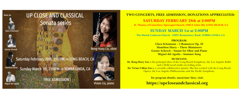 History remembers Clara Schumann as the most famous pianist of her generation, the wife of composer Robert Schumann and close friend of Johannes Brahms. She stopped composing in 1853, for practical reasons. Her skills as a pianist better supported her family and promoted Robert’s legacy after his death. These “Three Romances” were written for violin and piano and dedicated to violinist Joseph Joachim, who played with Clara in many of the 1,300 concerts she performed over their 40-year friendship. In the 1970’s, these “Three Romances” were adapted for oboe and piano and entered this combination’s repertoire. The three movements are linked melodically and harmonically into one single piece of music.