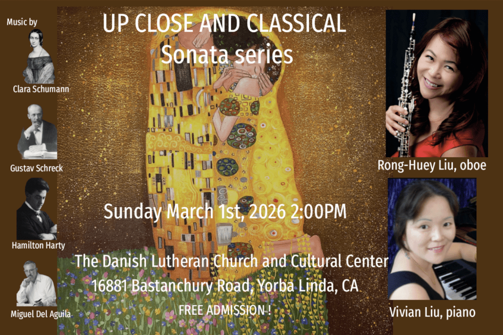 See below excerpts of Rong-Huey playing the 2nd movement of Mozart’s oboe quartet at UP CLOSE AND CLASSICAL’s February 1st, 2026 concert in Long Beach (with Limor Toren, Nicholaus Yee and Alicja Blanquart):